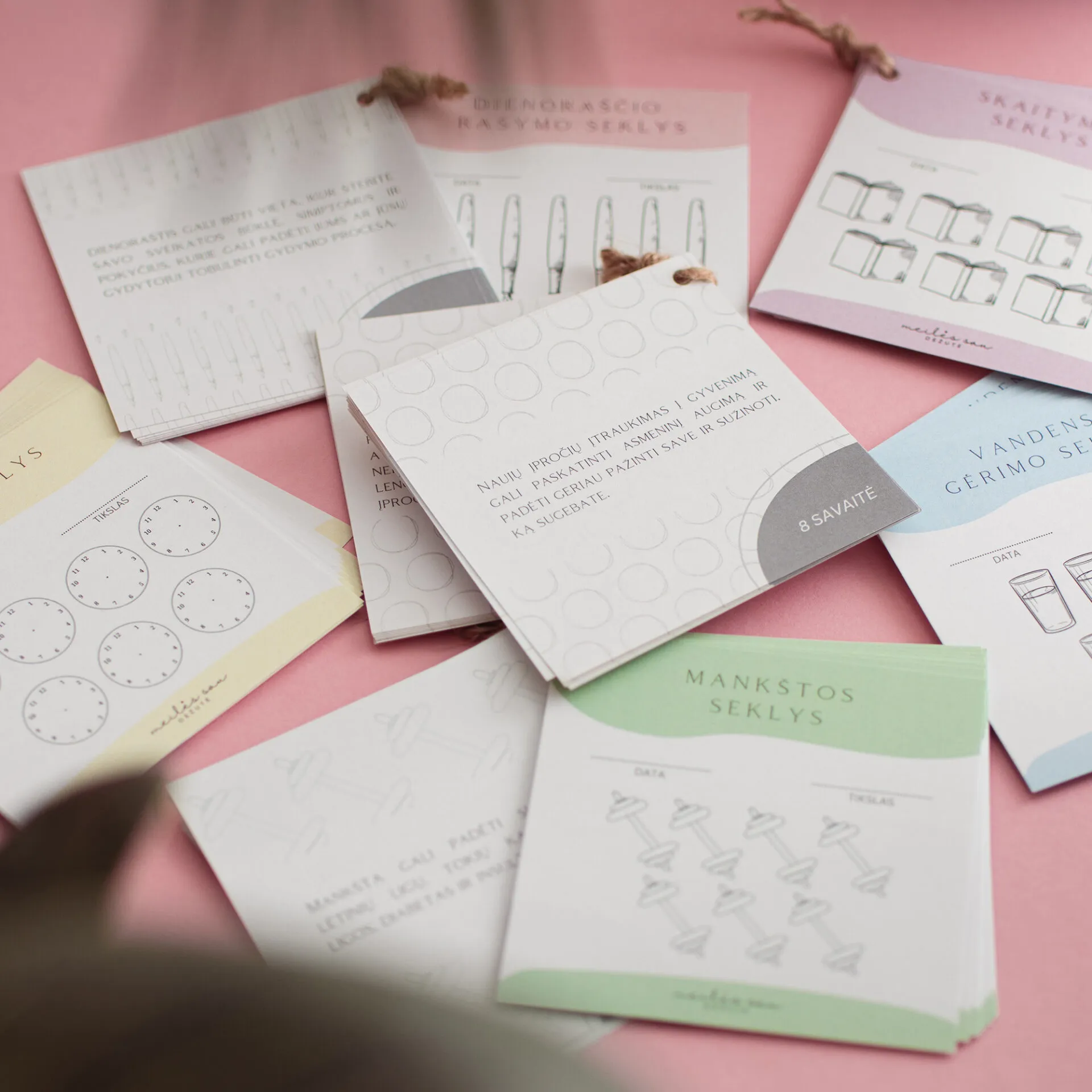• Kiekvieno įpročio seklys turi po 15 lapelių įpročiui stebėti (galima naudoti net 15 savaičių);