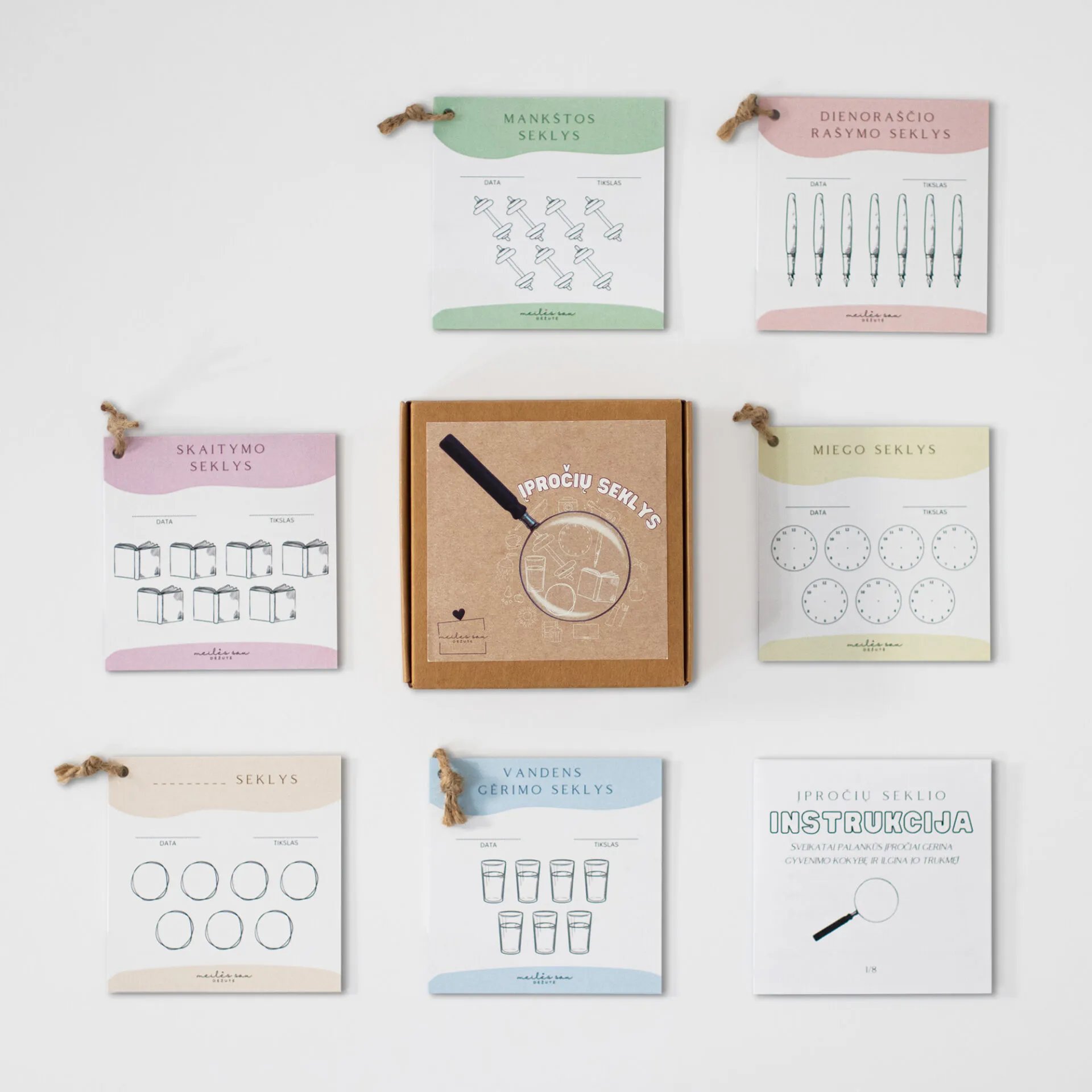 Įpročių seklys – tai priemonė, padedanti užauginti sveikatinančius įpročius ir kurti svajonių gyvenimą. Ši dėžutė kviečia sustoti, įsiklausyti į save ir rūpintis emocine bei fizine sveikata mažais, kasdieniais žingsniais. Puiki dovana tiek sau, tiek artimam žmogui!